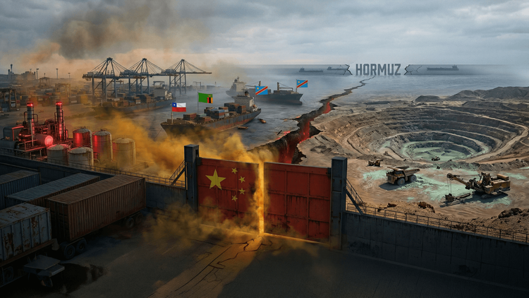 A geopolitical chokepoint in the Middle East triggers a severe chemical shortage, threatening South American copper production and global agricultural supply chains.